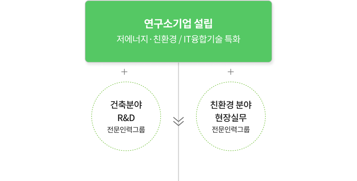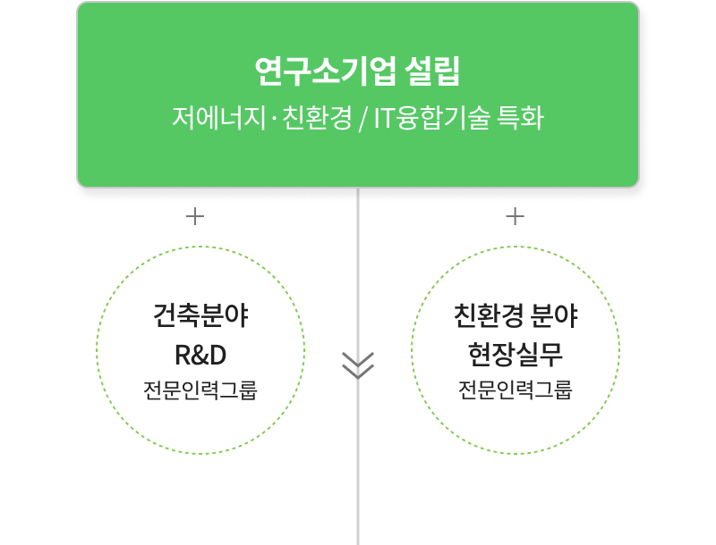 건축분야 R&D 전문인력들과 친환경분야 실무 전문인력들이