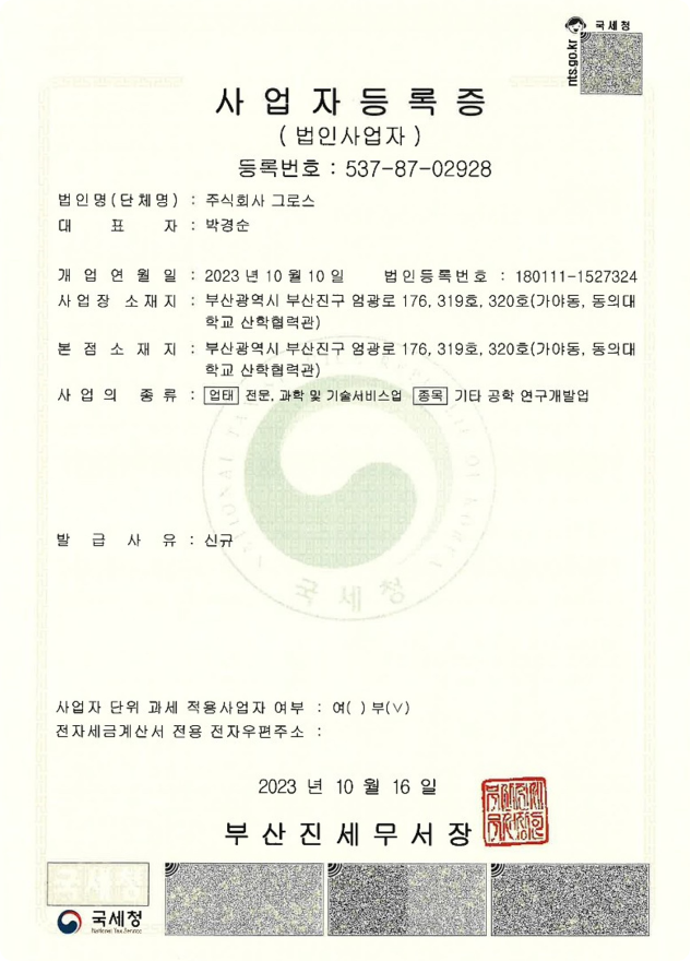 (주)그로스 임직원 일동
